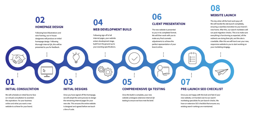 Our comprehensive, in-house team of designers, developers, and digital marketers dives deep to understand your business and your customers’ online behaviours. From the initial ideation and wireframing to the design, development, and QA testing, we’re with you every step of the way, inviting your feedback at each milestone to ensure the final product aligns perfectly with your brand’s short and long-term aspirations.